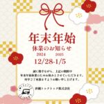 2024年12月24日 / Last updated : 2024年12月24日 tuktuk098 お知らせ 📣年末年始休業のお知らせ📣 はいさ~い沖縄トゥクトゥクです🌺 クリスマスを迎え2024年も残りわずかとなりました😲 まだまだ寒暖差もありますので、皆様お気をつけてお過ごしください! 2024年沖縄トゥク […]