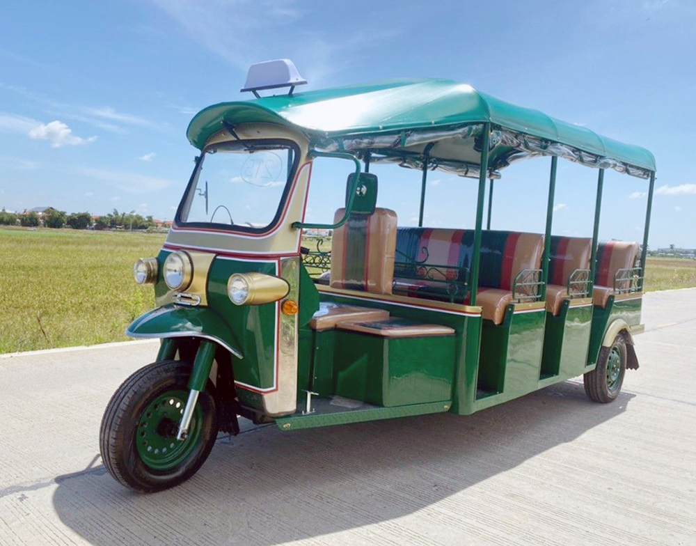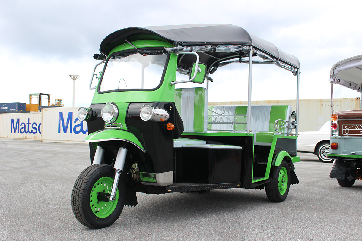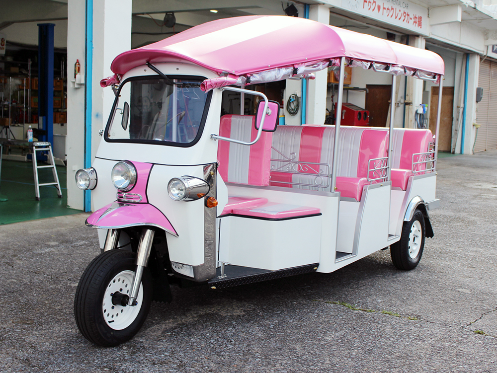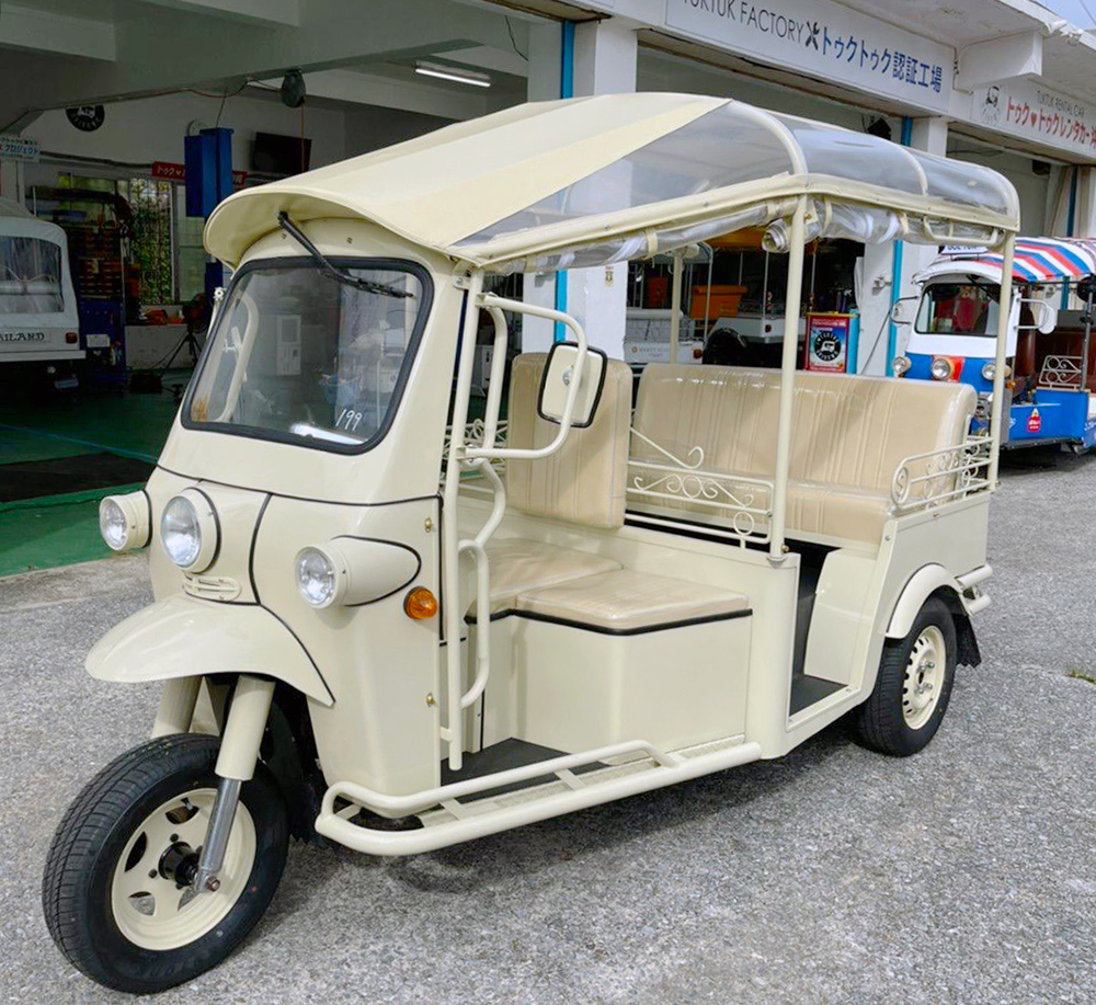 当社のトゥクトゥクは4~9人乗りからお選びいただけます。全車AT仕様にカスタム済み、簡単かつ安全に運転できます。常時、在庫車あり!在庫車は即納可能です。